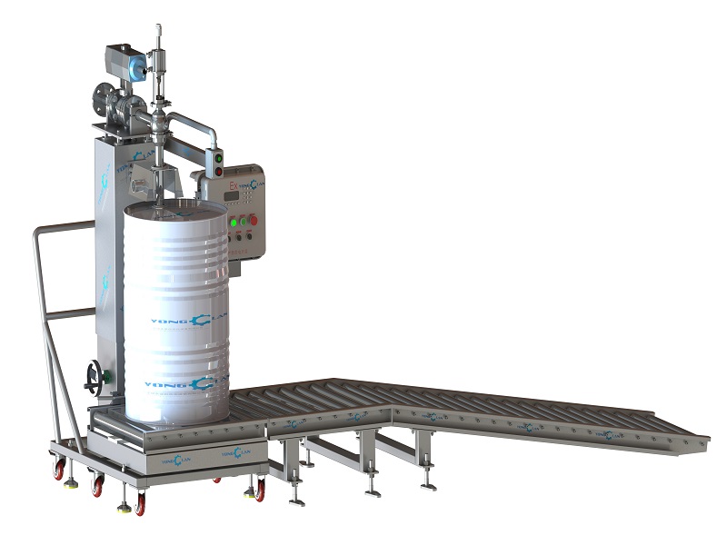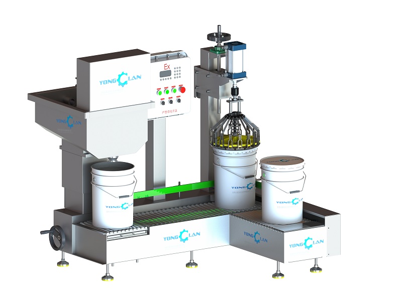 涂料灌裝機的操作流程:人工移上桶;手動啟動;自動開啟輸料泵及大小給料閥門;到設定工作點1關快給料閥門;到設定工作點2停輸料泵并關慢給料閥門;人工加蓋移桶至壓蓋位...